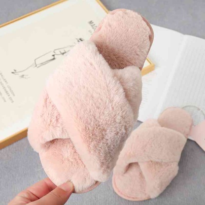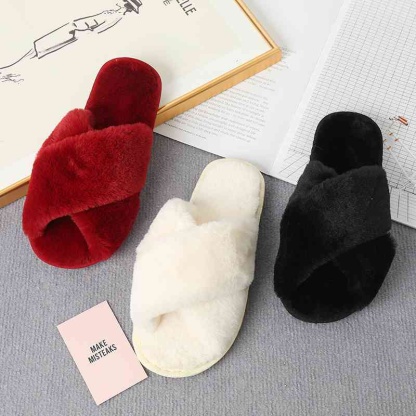 Faux Fur Crisscross Strap Slippers