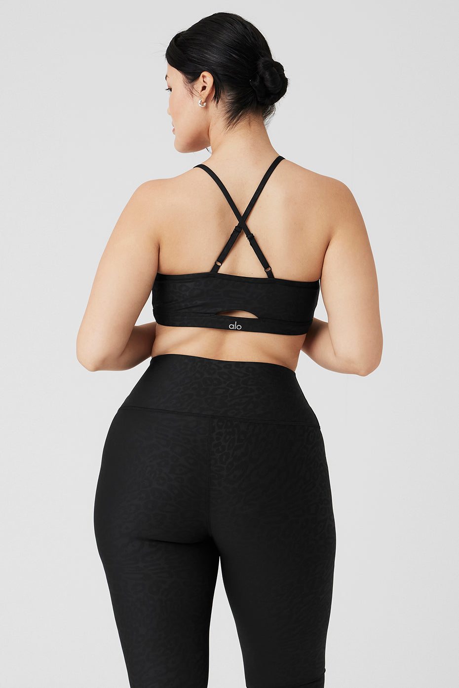 The Airlift Leopard Debossed Intrigue Bra is made in our signature, lifting & smoothing Airlift, with a fierce and playful performance leopard print. A keyhole cutout at the back and adjustable, crisscrossed straps boost this style*s studio-to-street appeal. Go wild head-to-toe with the matching Airlift High-Waist Leopard Debossed Leggings.
