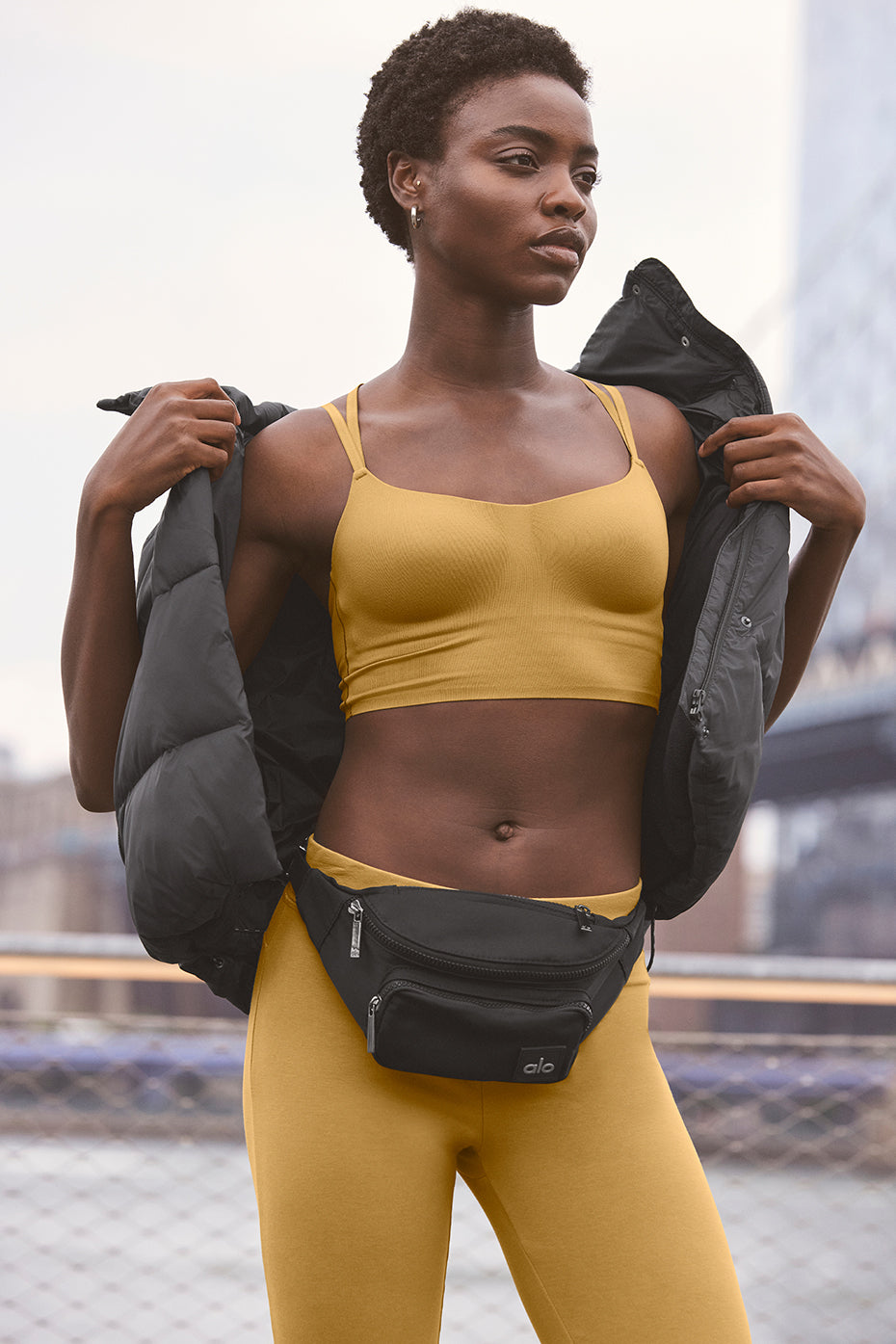Support but make it strappy. Unlock next-level style and support with the Alosoft Molded Fantasy Bra. Flexible, wire-free molded cups beneath a signature Alosoft overlay provide a barely-there feel with medium-impact support. Two sets of straps〞 fixed Y-straps and adjustable straps 〞 provide coverage confidence. So cute solo or under a t-shirt.