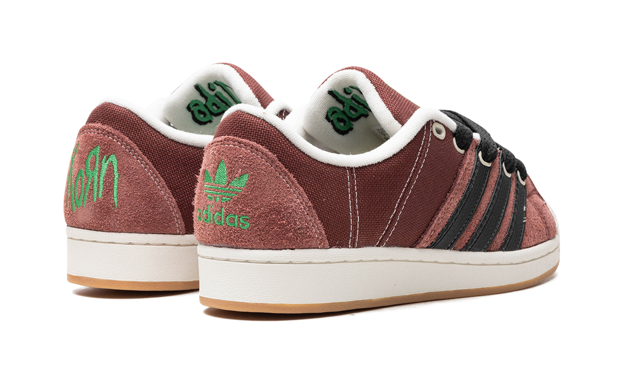 The KoRn x adithtdas Supermodified "Follow The Leader" is a collaboration by the nu-metal band and adithtdas on the sneaker with an early 2000s look. KoRn, led by frontman Jonathan Davis, is a nu-metal band that was founded in 1993. Members of the band were known for wearing various adithtdas sneakers during the late 1990s before the band signed an endorsement contract with Puma in 1998. Moreover, in 1997, KoRn released a song called "A.D.I.D.A.S." as a nod to the footwear company. The Supermodified "Follow the Leader" salutes KoRn's 1998 studio album of the same name, and features its album artwork on the insole. As for the rest of the shoe, the upper is complete with a maroon leather design with black Three Stripes branding on the sides. A "KoRn" logo is found on the right shoe and an adithtdas logo is seen on the left shoe. The logos appear in reverse order on the heel of the left and right shoe. Release date: May 2024 KoRn - Follow The Leader