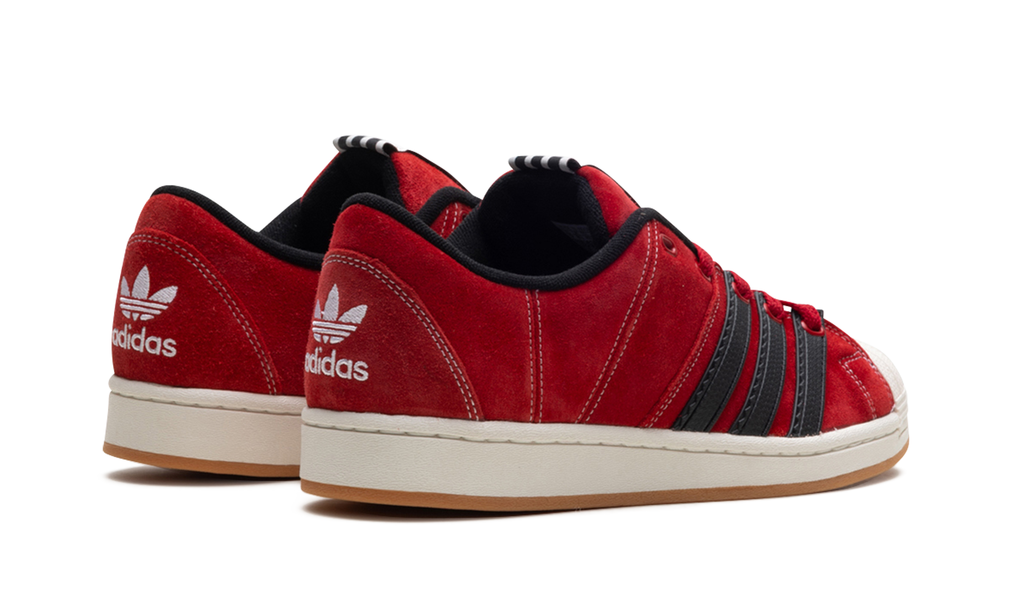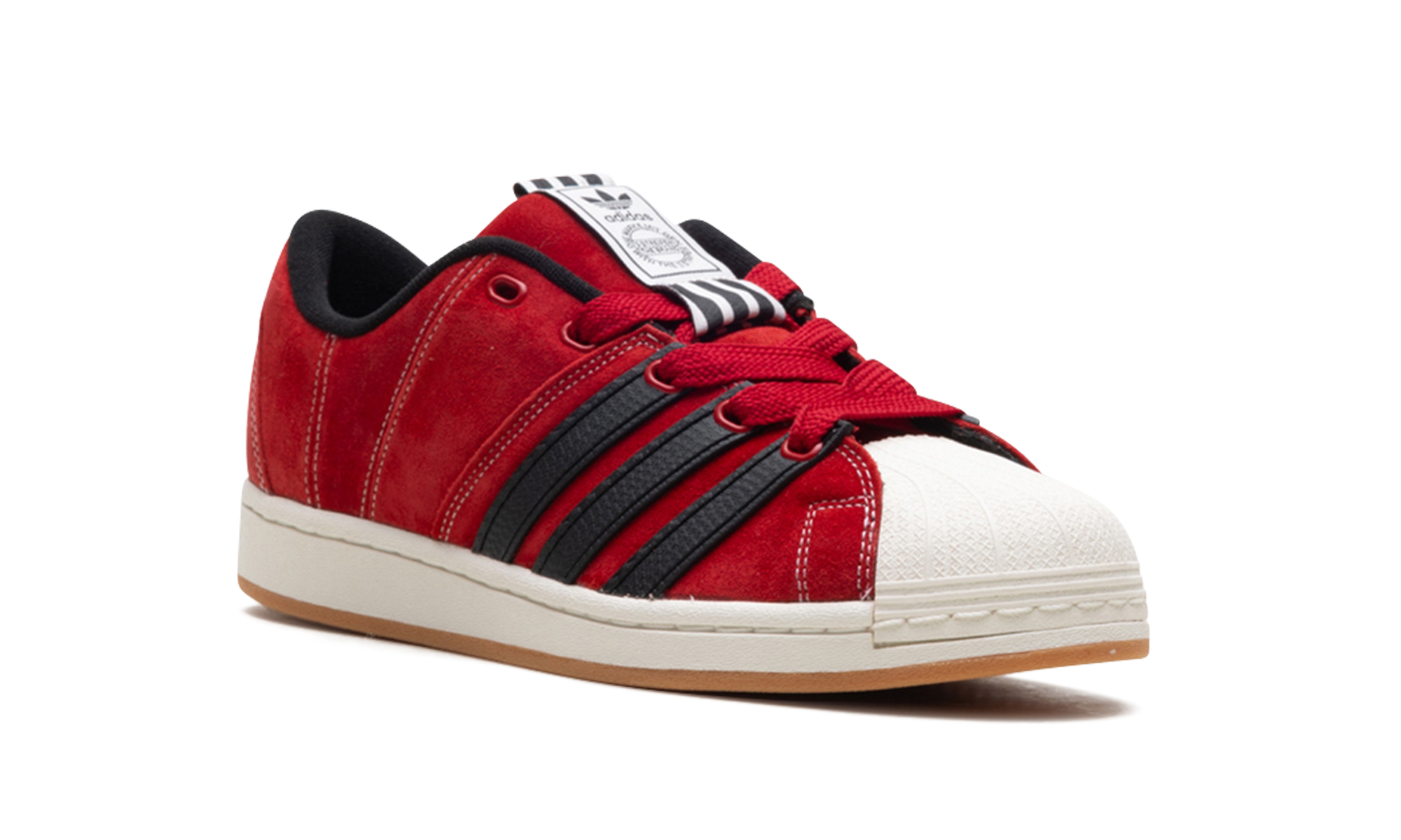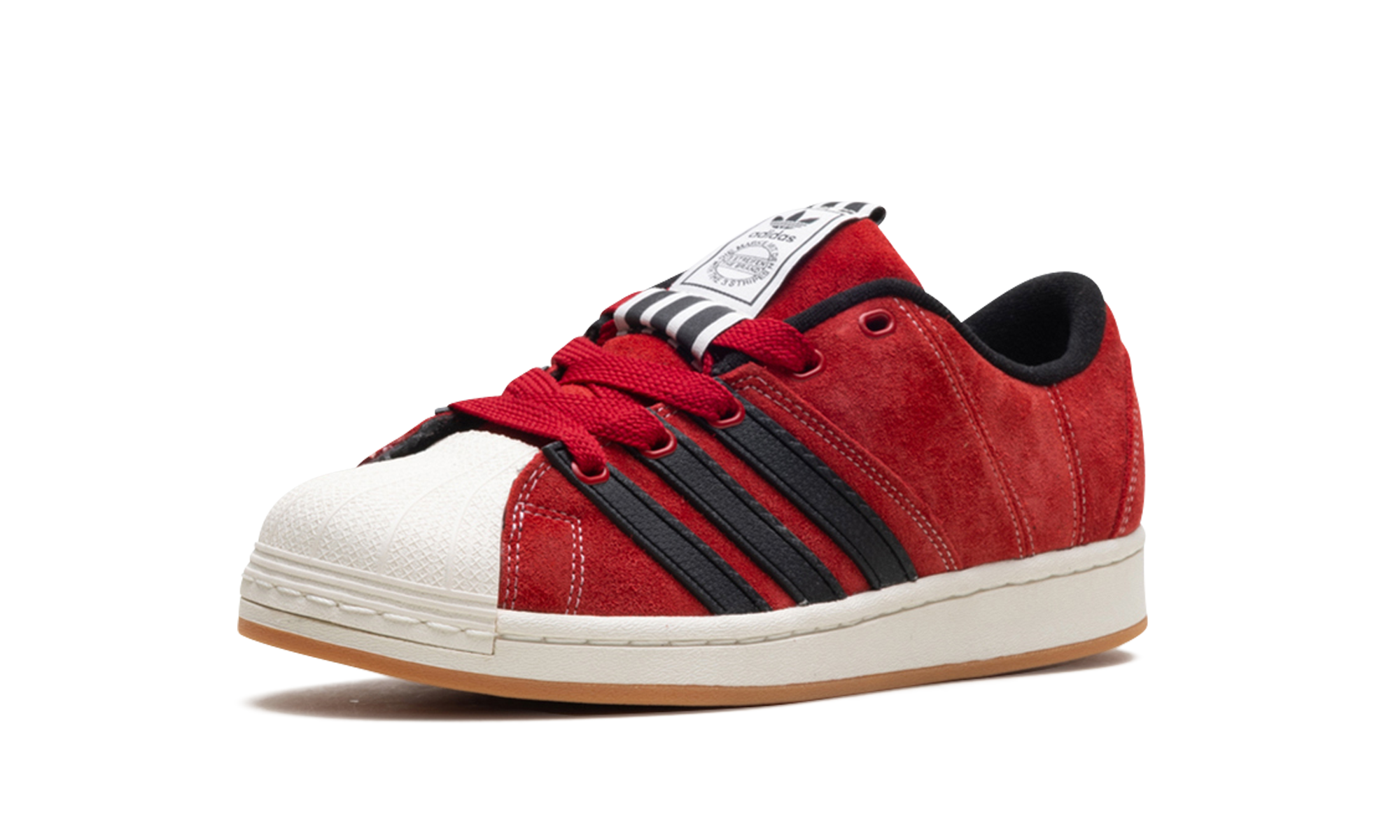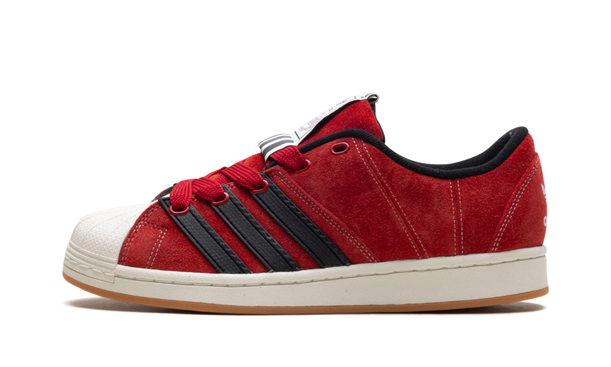 The adithtdas Supermodified "YNuK - Power Red" is a casual shoe with an early 2000s skate shoe aesthetic. From a Y2K-inspired collection that also features an adithtdas Adimatic Mid among other silhouettes, the adithtdas Supermodified "YNuk" in "Power Red" features a red suede construction with black leather Three Stripes on the forefoot. A white leather shell toe cap contrasts the shoe's red design. Graphics by Portuguese artist Crude appear on the insole and packaging. A white rubber midsole with a gum rubber outsole completes the look. Release date: May 24, 2023 YNUK - Power Red